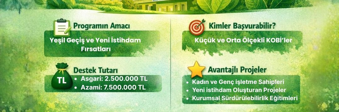 🌱 TR33 Bölgesi’nde Yeşil Dönüşüme 315 Milyon TL Destek! Zafer Kalkınma Ajansı, SoGreen Projesi kapsamında TR33 Bölgesi’ndeki KOBİ’lerin çevre dostu üretim ve hizmet süreçlerine yeşil geçiş odaklı yeni istihdam fırsatları oluşturmak için 315 milyon TL’lik destek programı başlattı. ♻️ Programın Amacı Bölgede faaliyet gösteren KOBİ’lerin yeşil dönüşüm yolunda ilerlemesini sağlamak ve sürdürülebilir ekonomi yaratmak. 🎯…